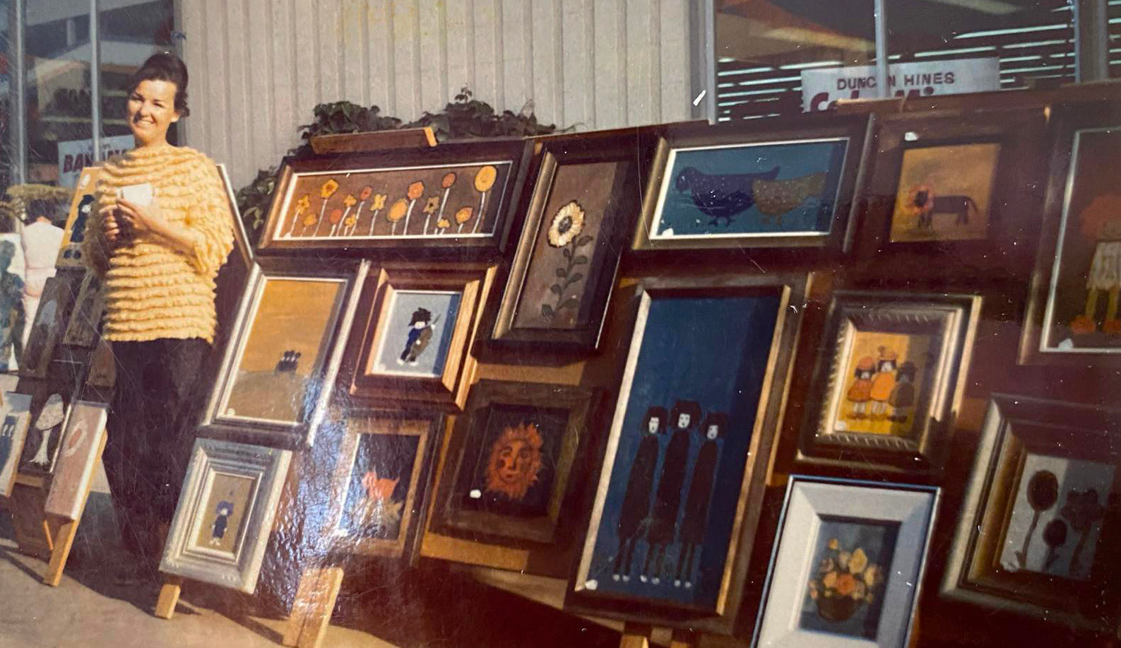 Above is the earliest photo of her art career. This is 1961 in front of a grocery store in Orange County, California. This is where we got started. Dad arranged the frames, mom painted and both sold her art on the street. I remember these days well in our old Ford station wagon while I was about five and my sister was about two. The Weedn family has owned the Flavia trademark and copyrights since 1965.