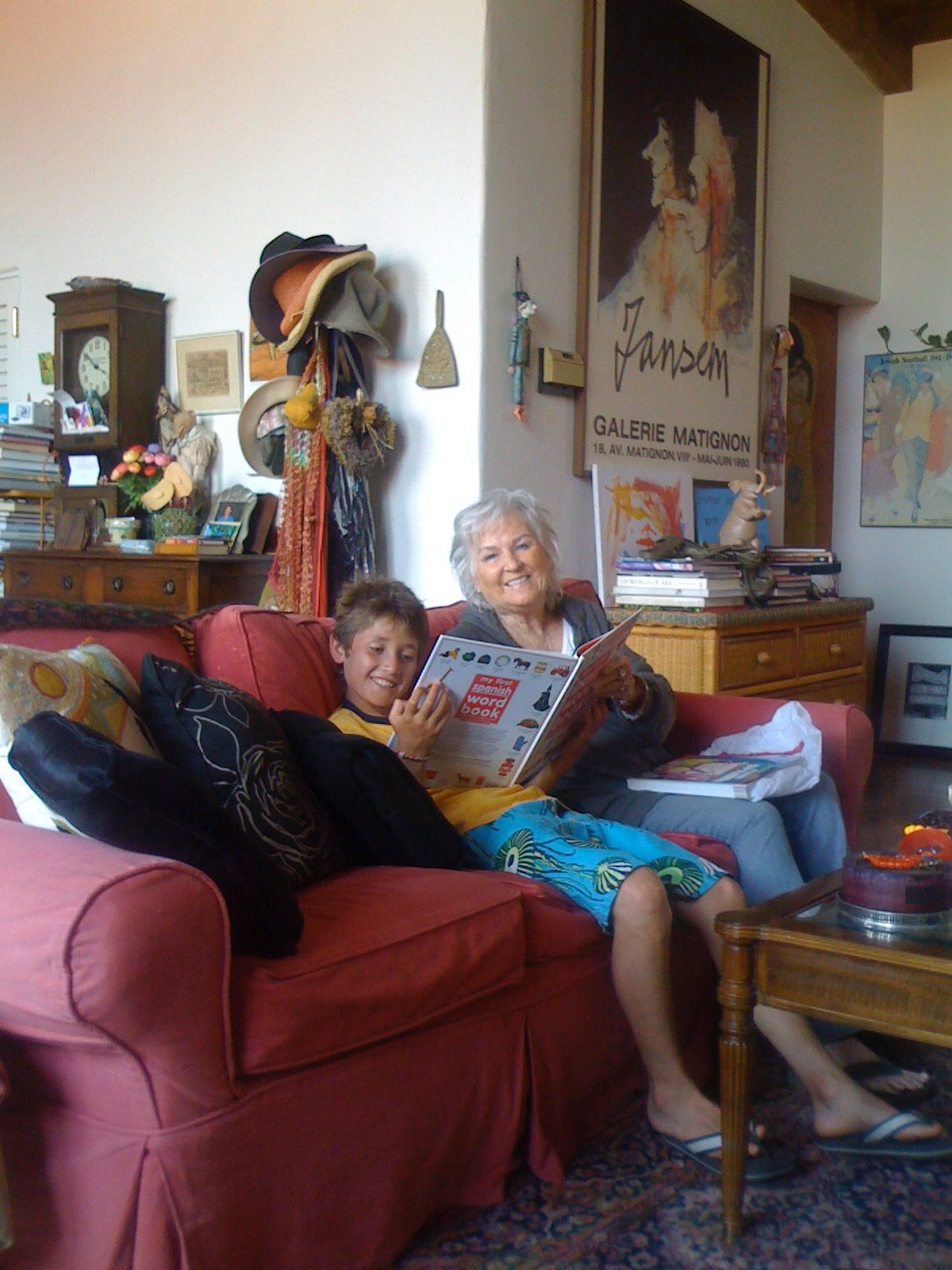 Here she is enjoying time with her grandson Miguel Angel Weedn in her Santa Barbara studio in the Old El Paseo. Circa 2008.